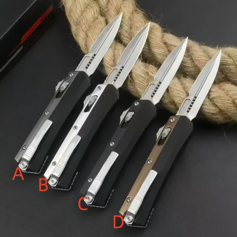 Die besten OTF Messer bestehen aus rostfreiem, gehärtetem Klingenstahl wie D2, 440C oder CPM-Sorten. Das Gehäuse wird oft aus Aluminium oder Edelstahl gefertigt, um Stabilität und Langlebigkeit zu gewährleisten. Hochwertige Verarbeitung sorgt dafür, dass Mechanik und Klinge reibungslos funktionieren.
