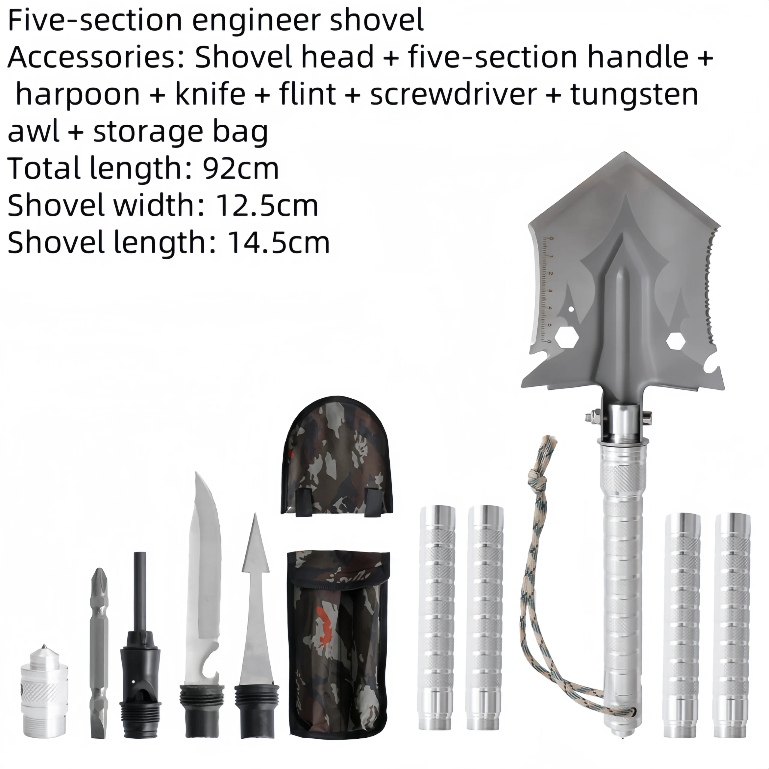 Camping engineer shovel multifunctional iron catalpa outdoor fishing digging garden vehicle convenient military shovel